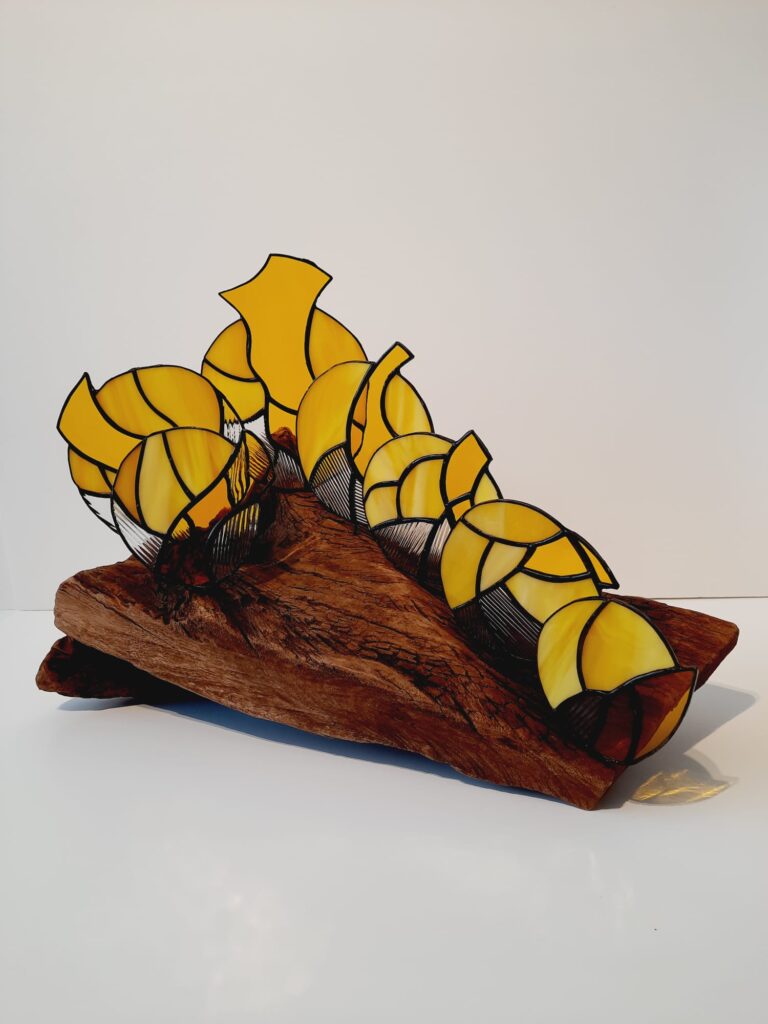 Dit glaskunstwerk is te zien tijdens ‘Kunst in de tuinen 2022’ in Exmorra. Voor meer informatie zie: https://beleefexmorra.nl/